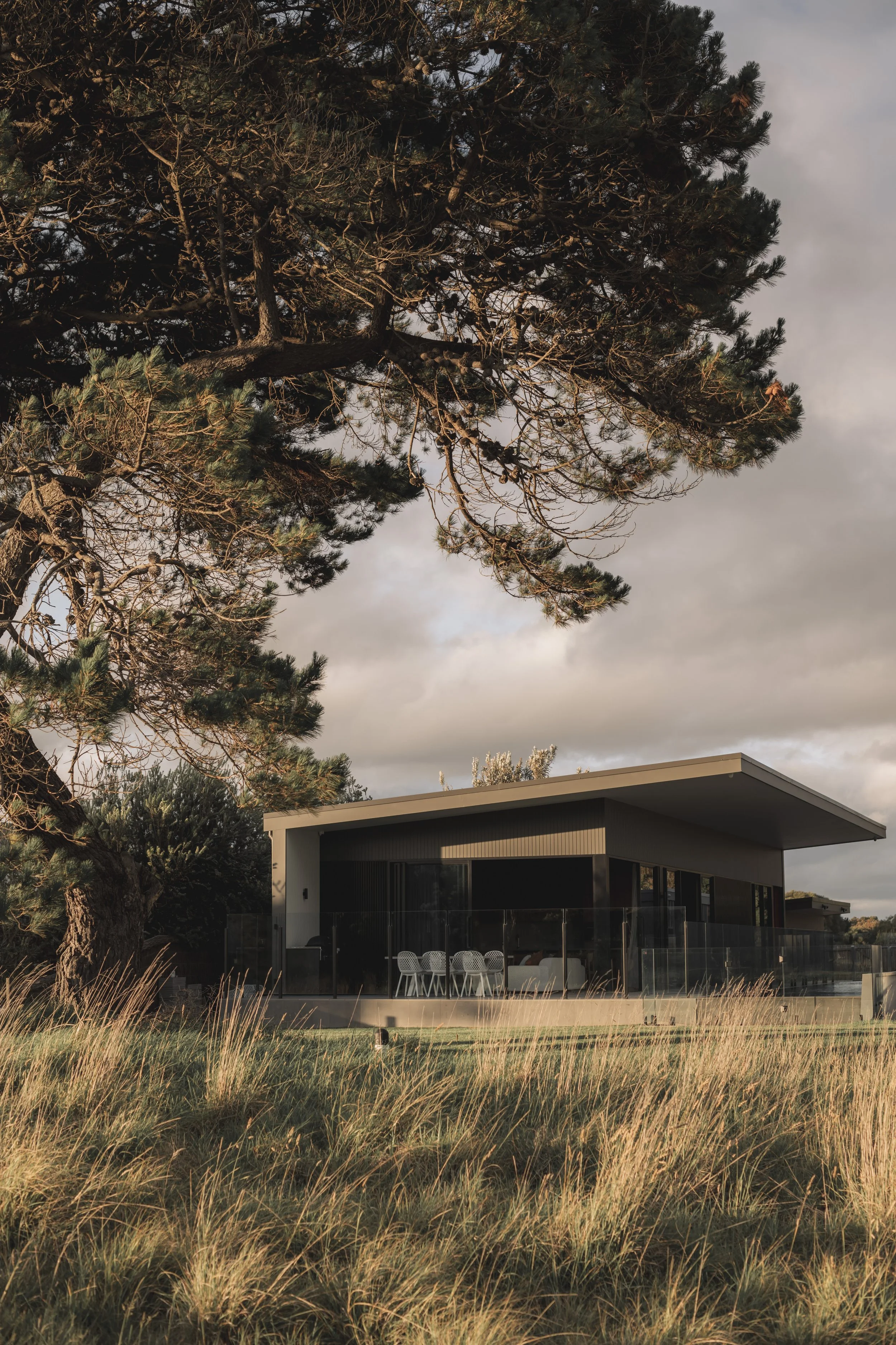 Located on the 13th Beach golf course, this residential interior design project was an elaborate extension designed for entertaining. The soft, warm palette seamlessly mirrors the surrounding landscape and celebrates the uninterrupted views of the golf course and pool.